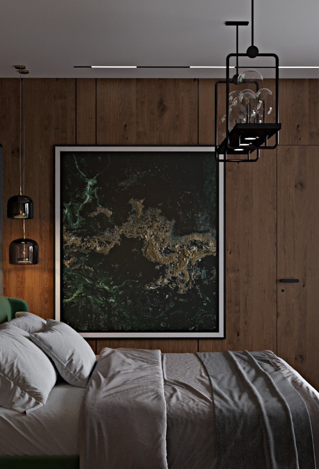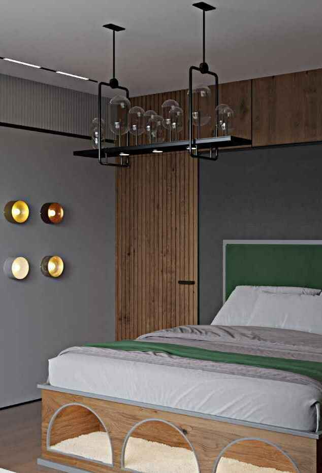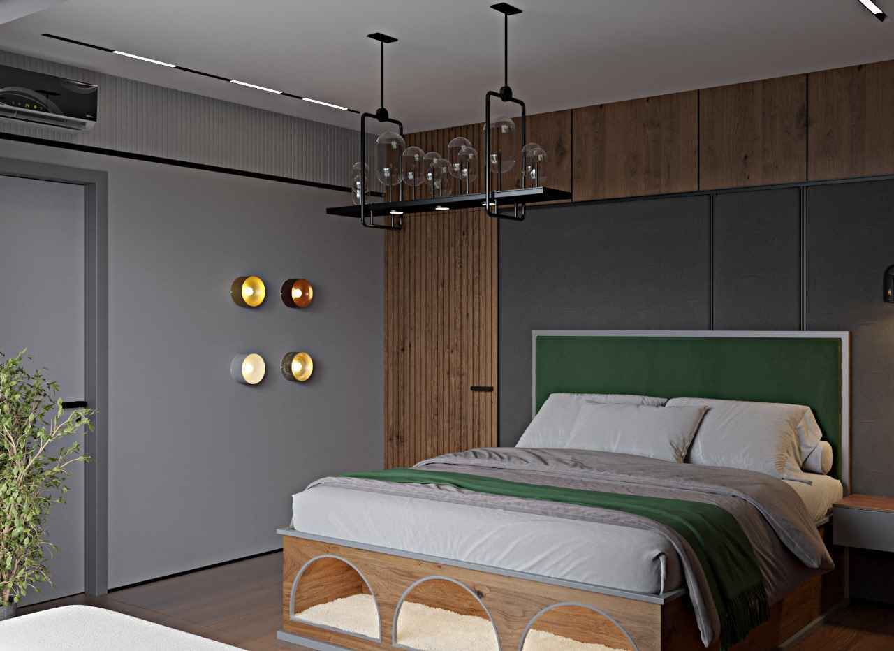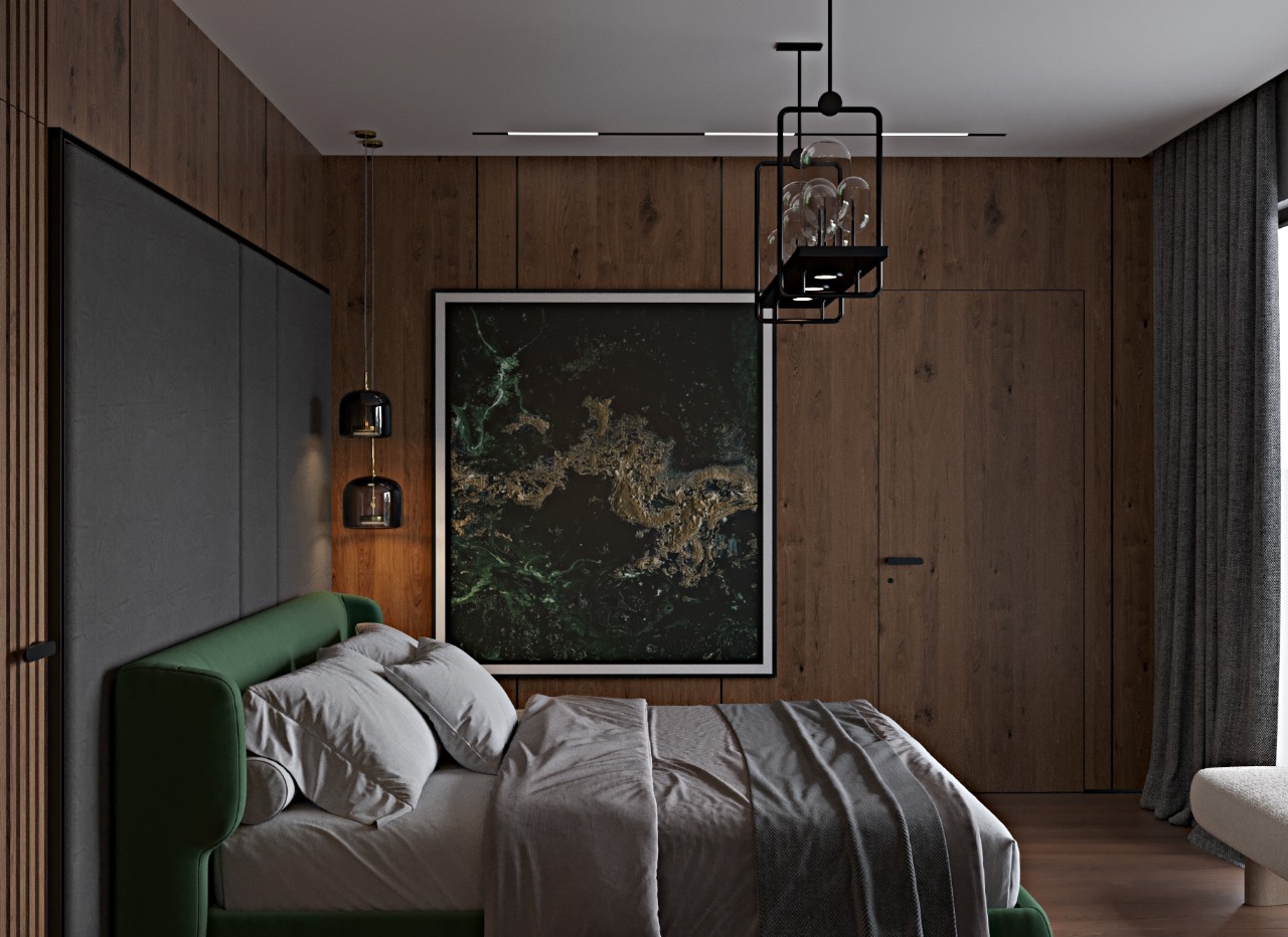 - Спальня — Уютная и тихая спальня, изолированная от основной зоны дома для максимального отдыха. Мягкий текстиль, приглушённое освещение и спокойная цветовая палитра способствуют глубокому сну.