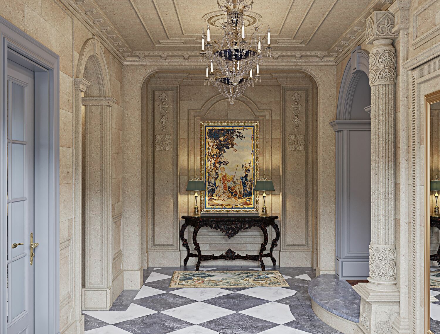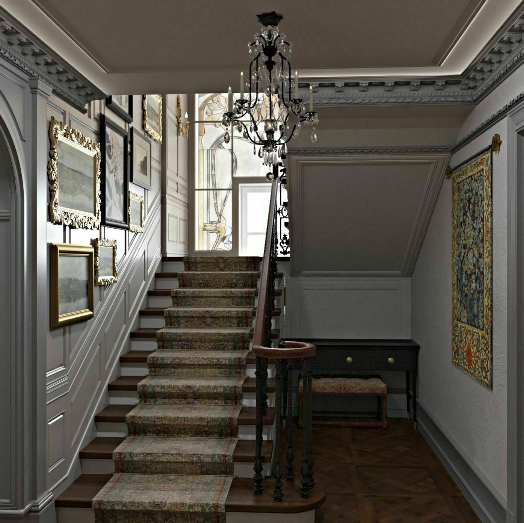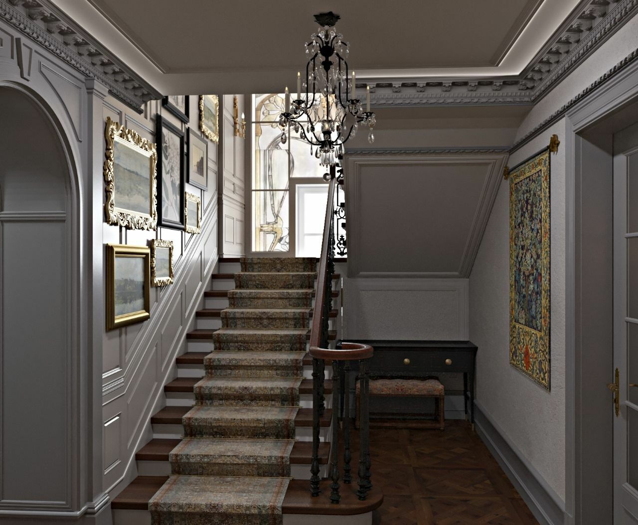 Проект «Дом Мысхако» выполнен в сдержанном и утончённом английском стиле. Архитектура сочетает строгие пропорции, симметрию и классические элементы фасада — каменную отделку, кирпич и декоративные акценты. Дом выглядит основательно и благородно, словно воплощая дух старой Англии.