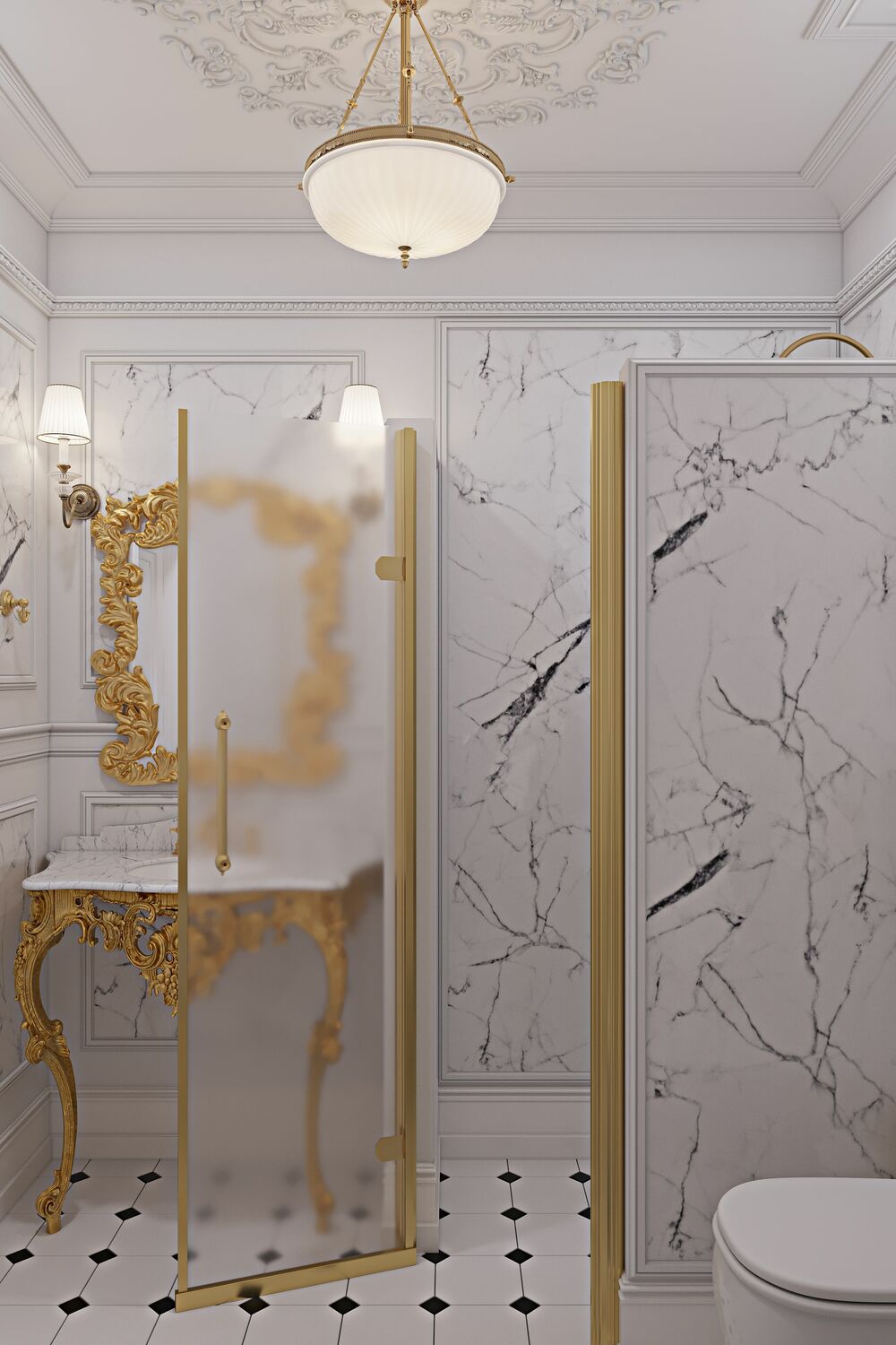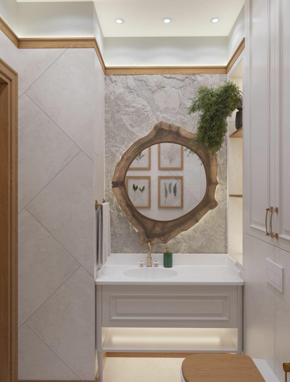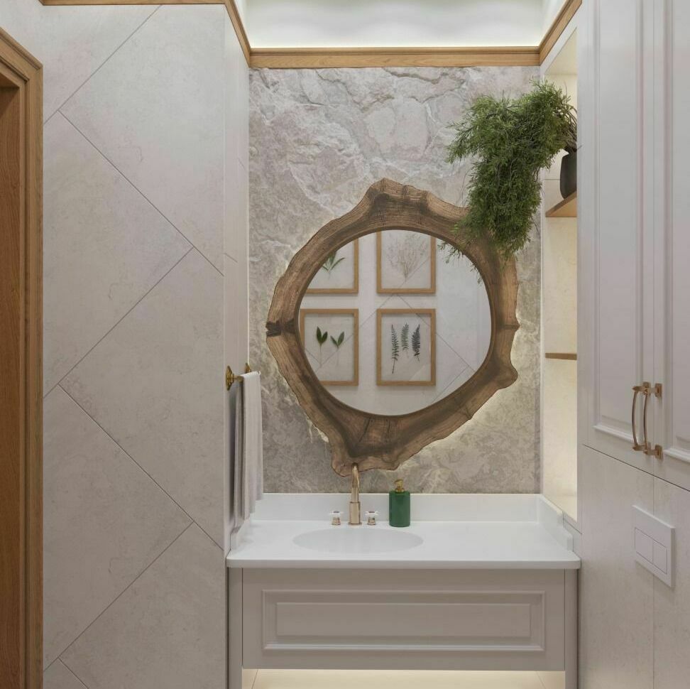 - Гостевой санузел — Компактное, но изысканное пространство с минималистичной отделкой. Натуральный камень, тёплая подсветка и современная сантехника создают ощущение уюта и чистоты.