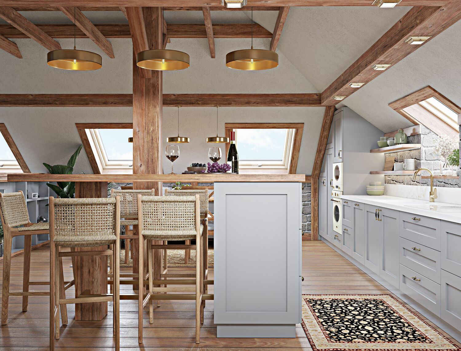 Мансарда — это особое пространство под крышей, наполненное уютом и светом. Панорамные или мансардные окна открывают вид на небо и создают ощущение лёгкости. Интерьер выполнен в светлых тонах, что визуально расширяет помещение, а наклонные потолки придают комнате характер и индивидуальность.