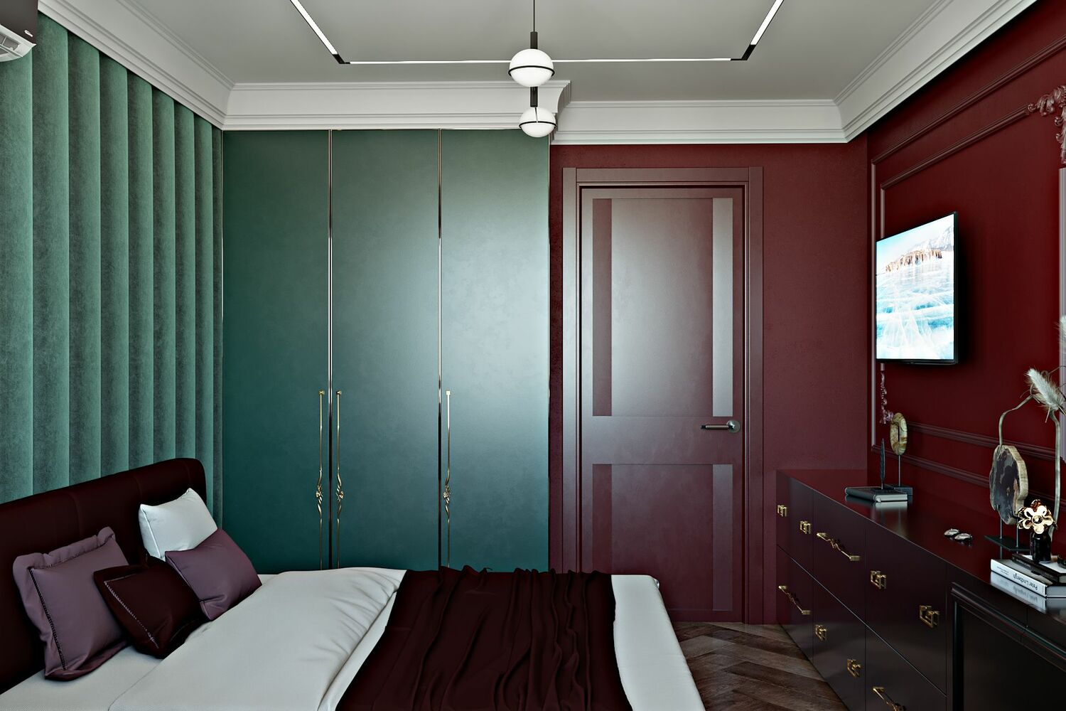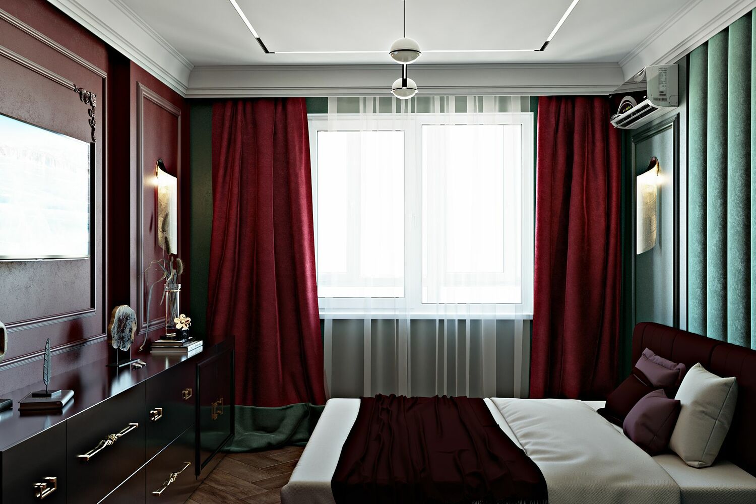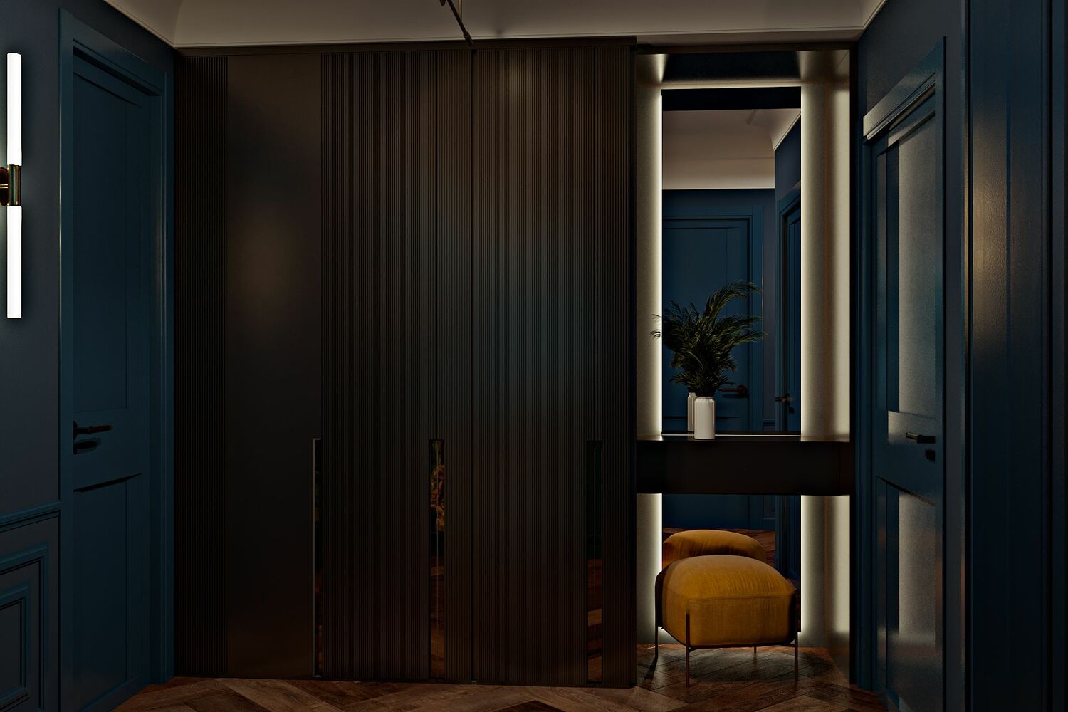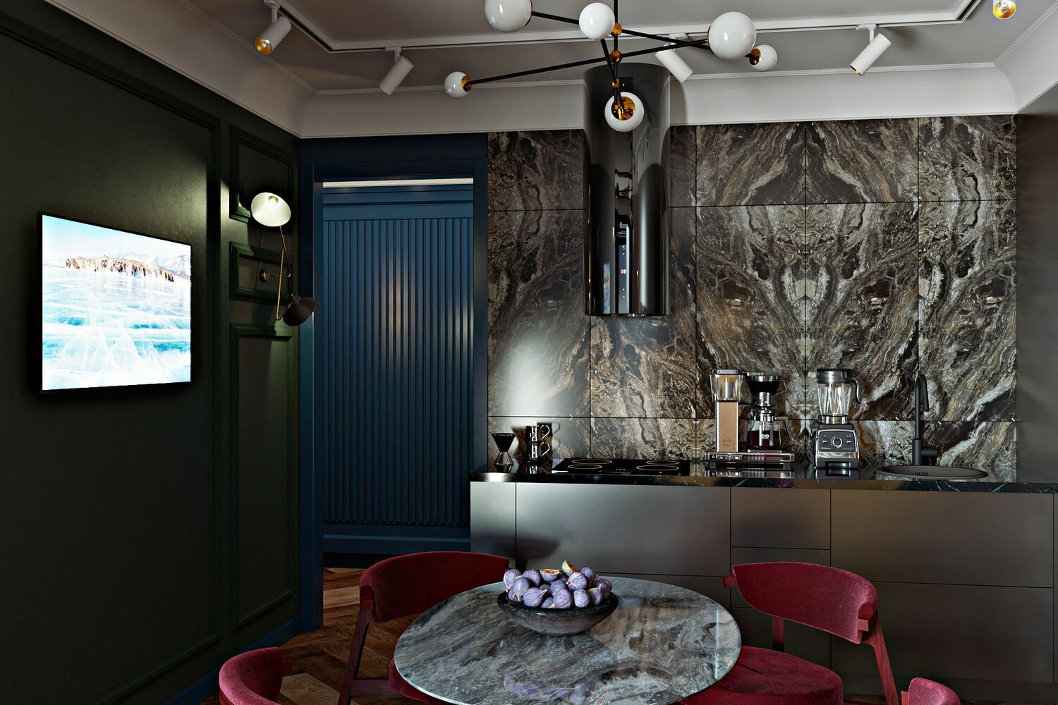 Заказчики хотели необычный интерьер в темных глубоких тонах.