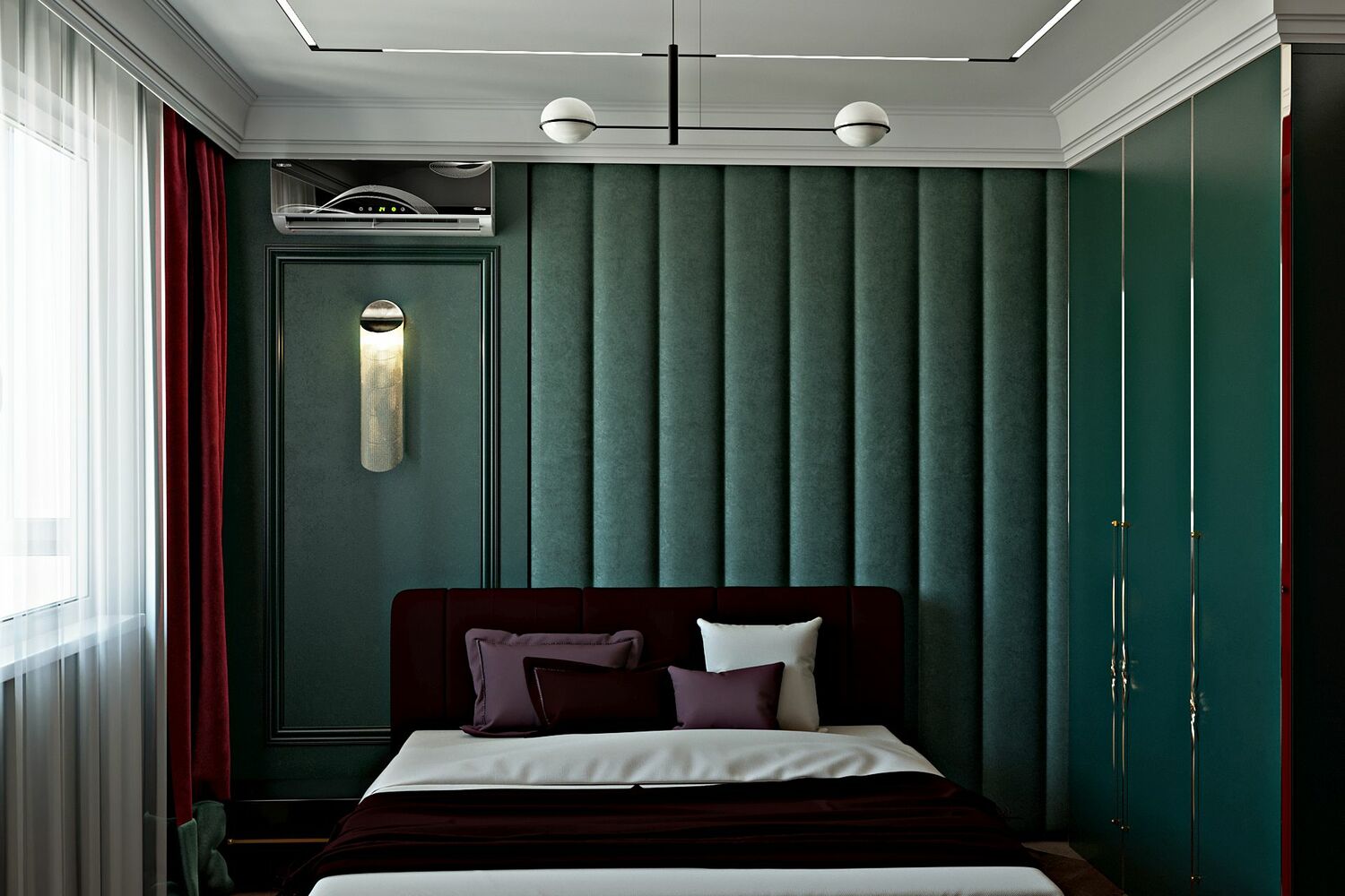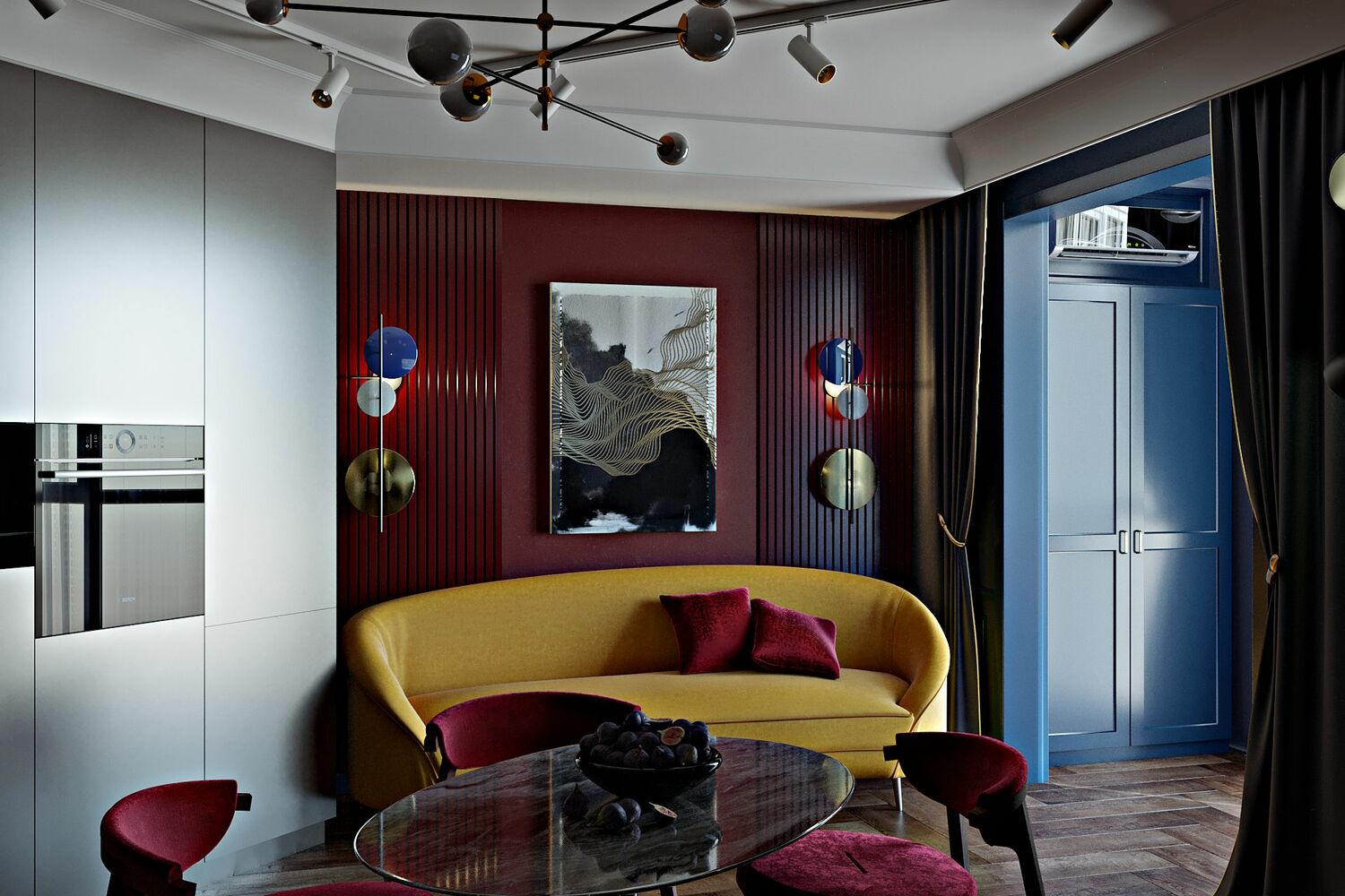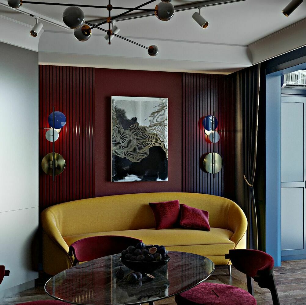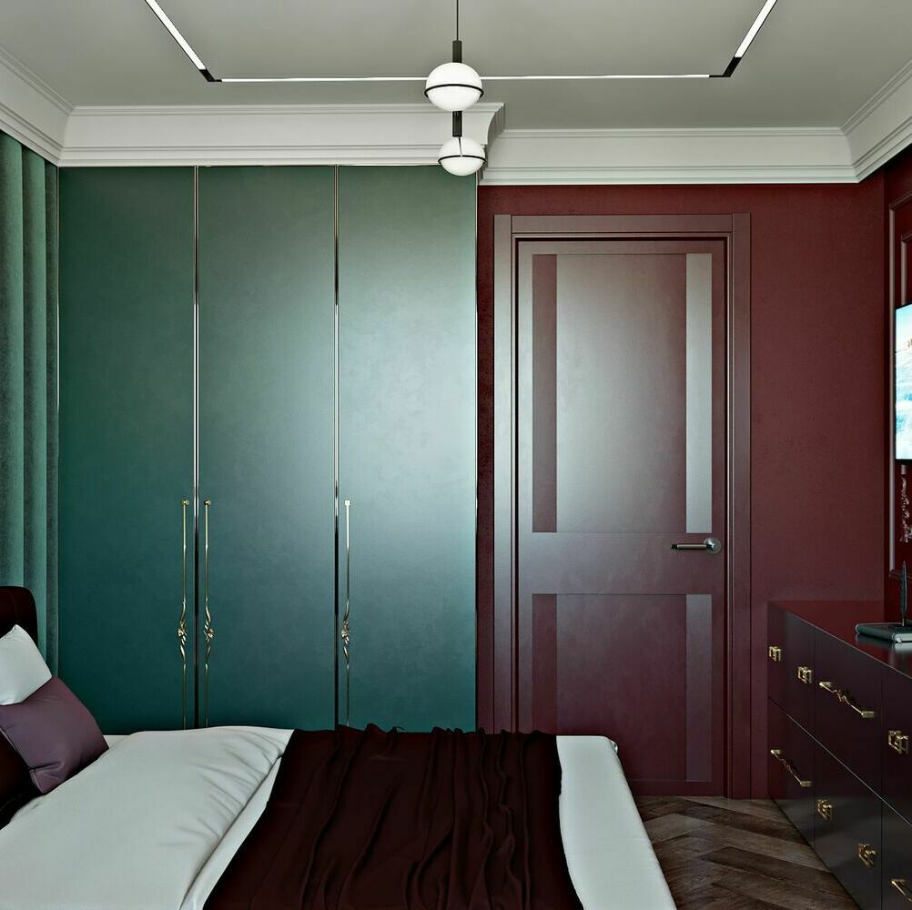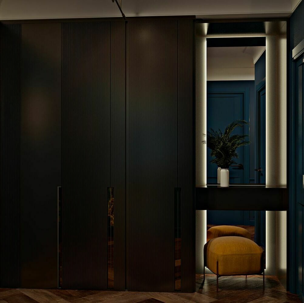 Заказчики хотели необычный интерьер в темных глубоких тонах.